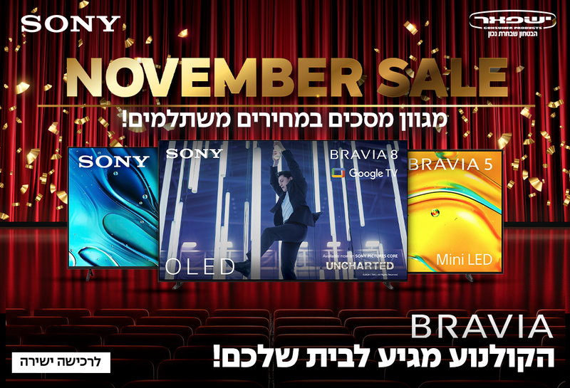 טלוויזיה SONY XR55 | BRAVIA 5 | מעבד XR | MINI LED | 4K Ultra HD | HDR | Google TV